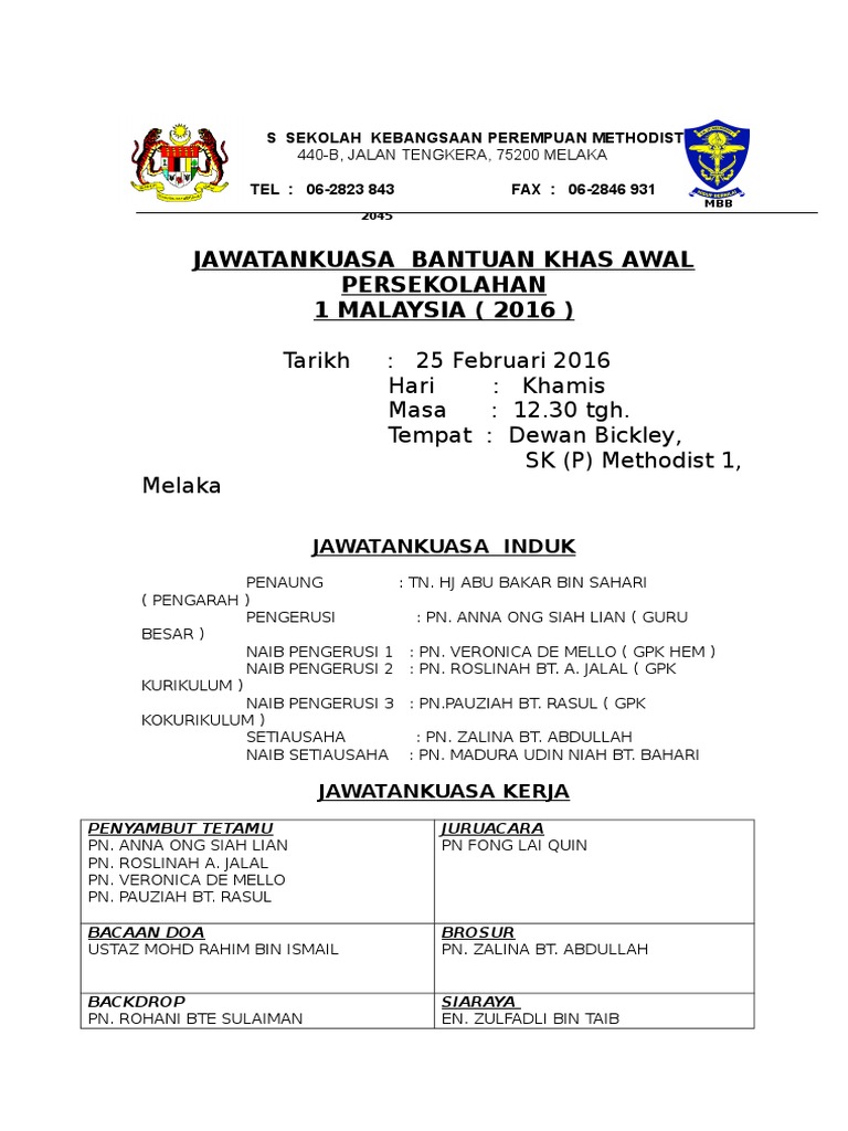 Pengerusi memberitahu tentang Kerajaan Malaysia telah meluluskan pemberian Bantuan Khas Awal. Penyerahan Bantuan Khas Awal Persekolahan Tahun 2016 BKAP1M Watikah Pelantikan Pemimpin-Pemimpin Sekolah. Alamat emel ini dilindungi dari spambot.